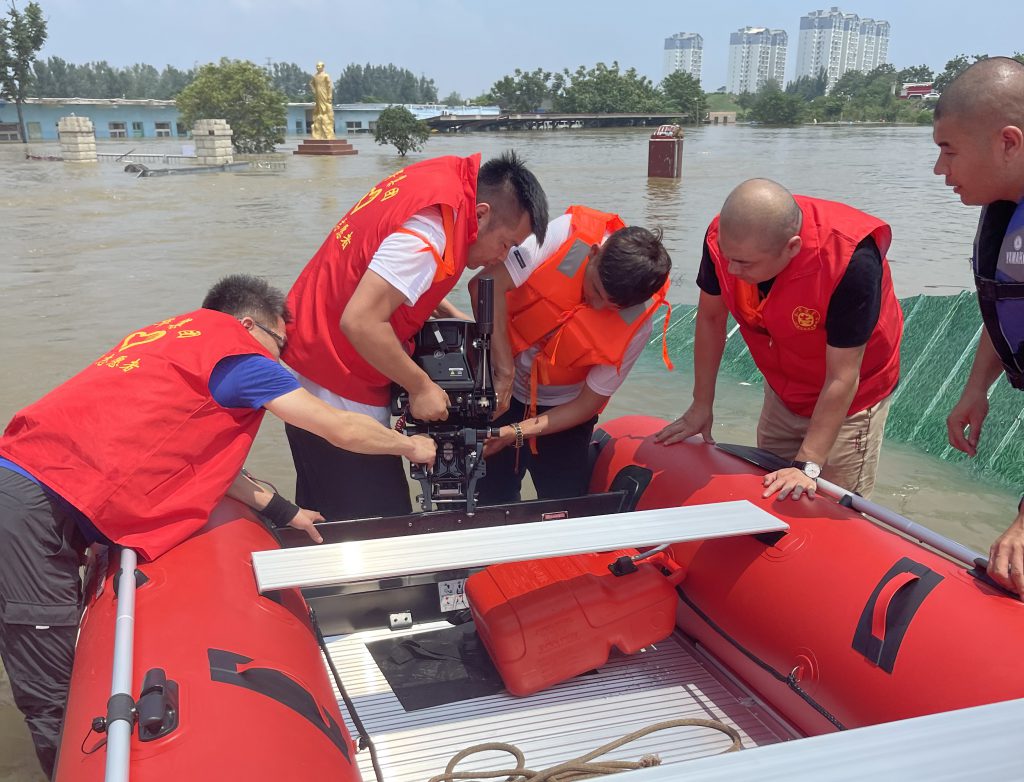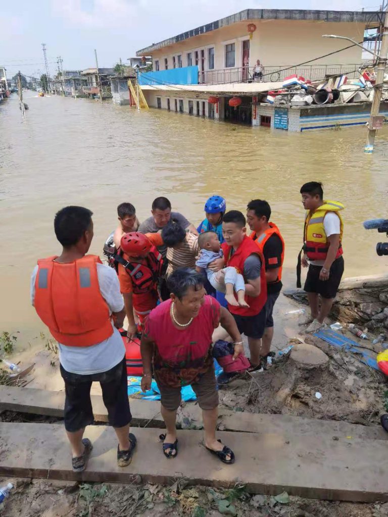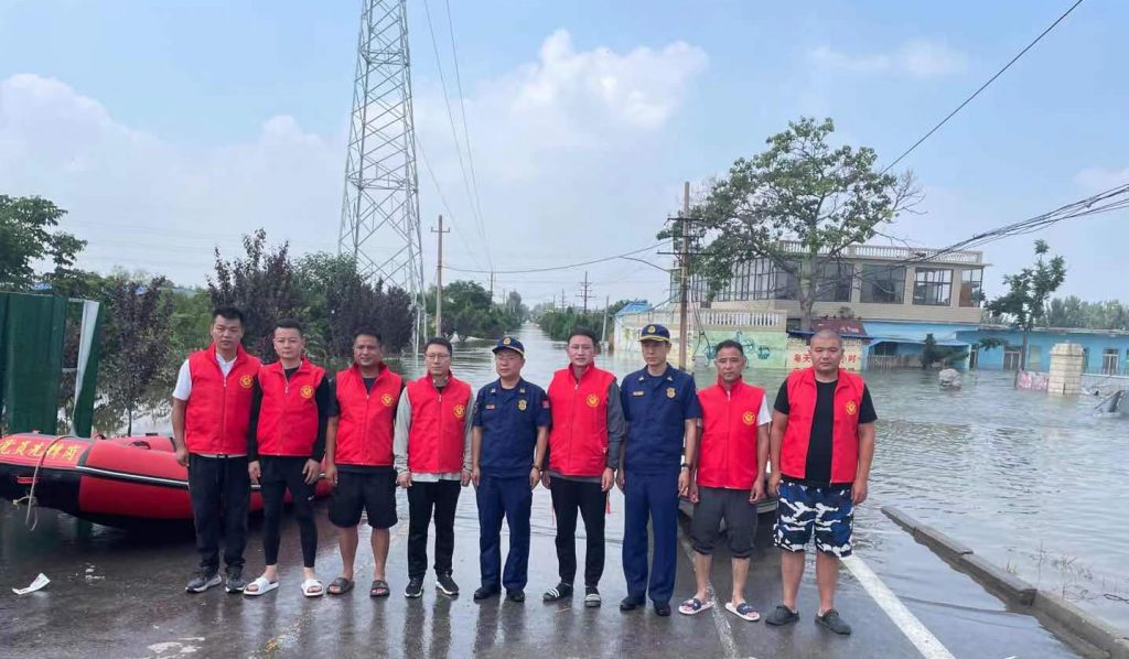 在集团董事长韩红安的号召下,世界杯官方网站入口建工副总经理杨明、世界杯官方网站入口股份物资采购中心总监胡旭、行政管理中心王雅鑫等近20名具备基本救援技能的世界杯官方网站入口人,紧急成立世界杯官方网站入口抢险突击队,在与消防救援单位完成对接后,自备三艘冲锋舟、20余件救生衣、照明设备、药品、补给食物等,于7月23日上午9点赶往寺庄顶村开展紧急救援。