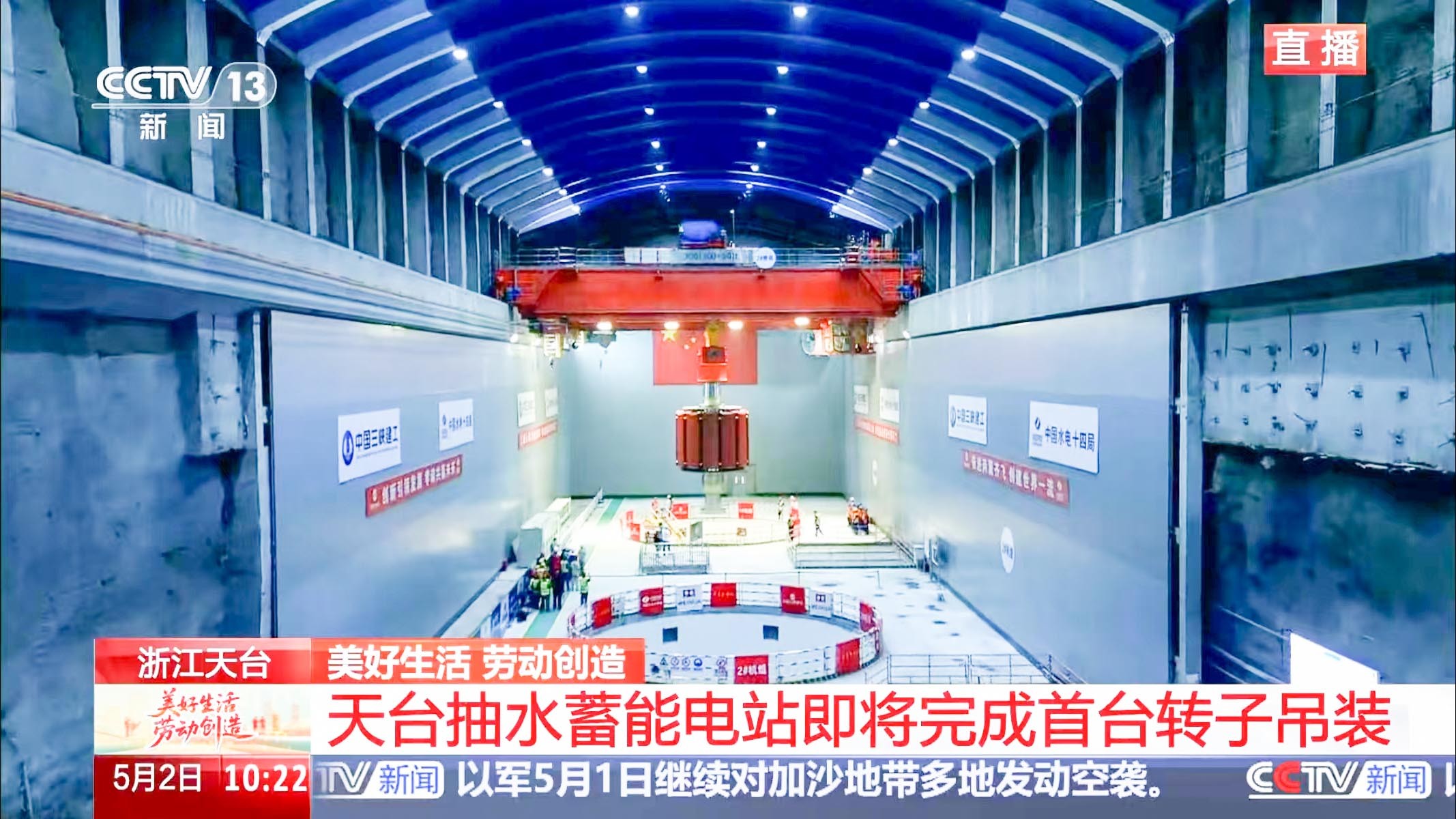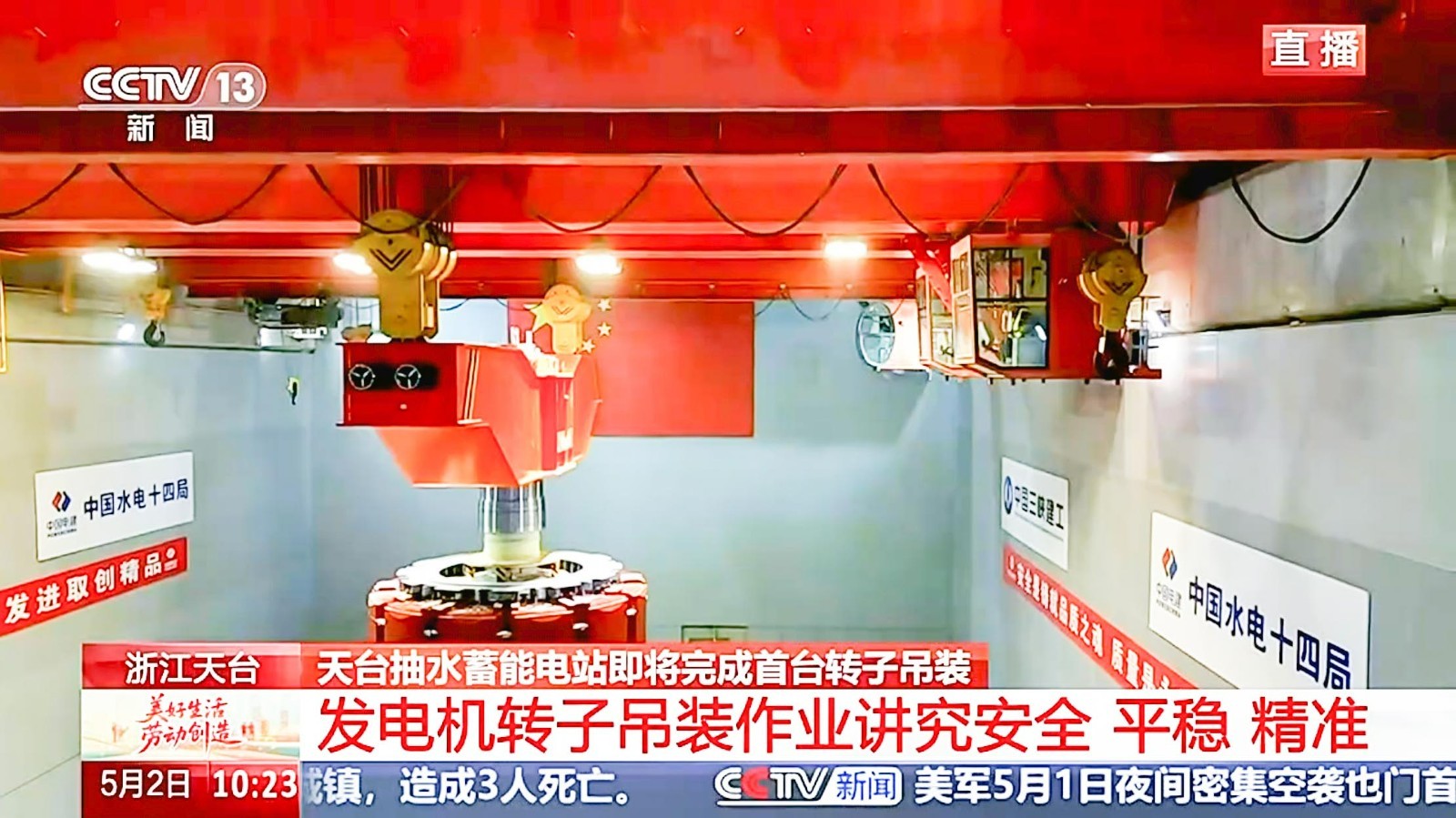 5月2日上午,在中央电视台新闻直播现场,河南世界杯官方网站入口两台300吨新中式桥式起重机将浙江天台抽水蓄能电站1号机组的转子沿着预定的吊装路线平稳、精准地吊入1号机坑,标志着我国首台单机容量425兆瓦抽水蓄能机组安装工程取得里程碑式进展。